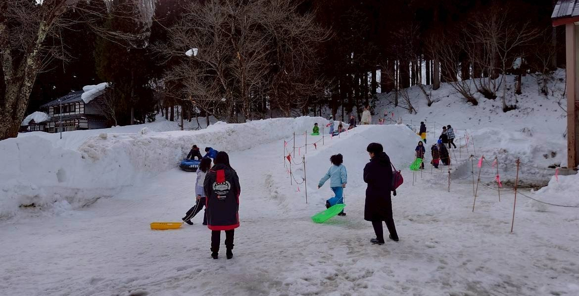 利賀地域の子供たちも集まり、楽しそうに雪遊びをしてました。